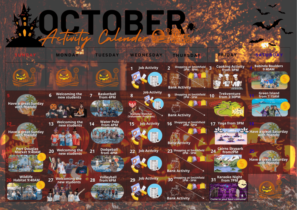となります。自由参加の無料アクティビティが毎日あって、ズンバや、ヨガや、アートをしたり、履歴書作成なども手伝ってくれます。新入生の場合は、スタッフがみんな一緒に銀行に連れていってくれて、銀行口座の開設をしたり。
