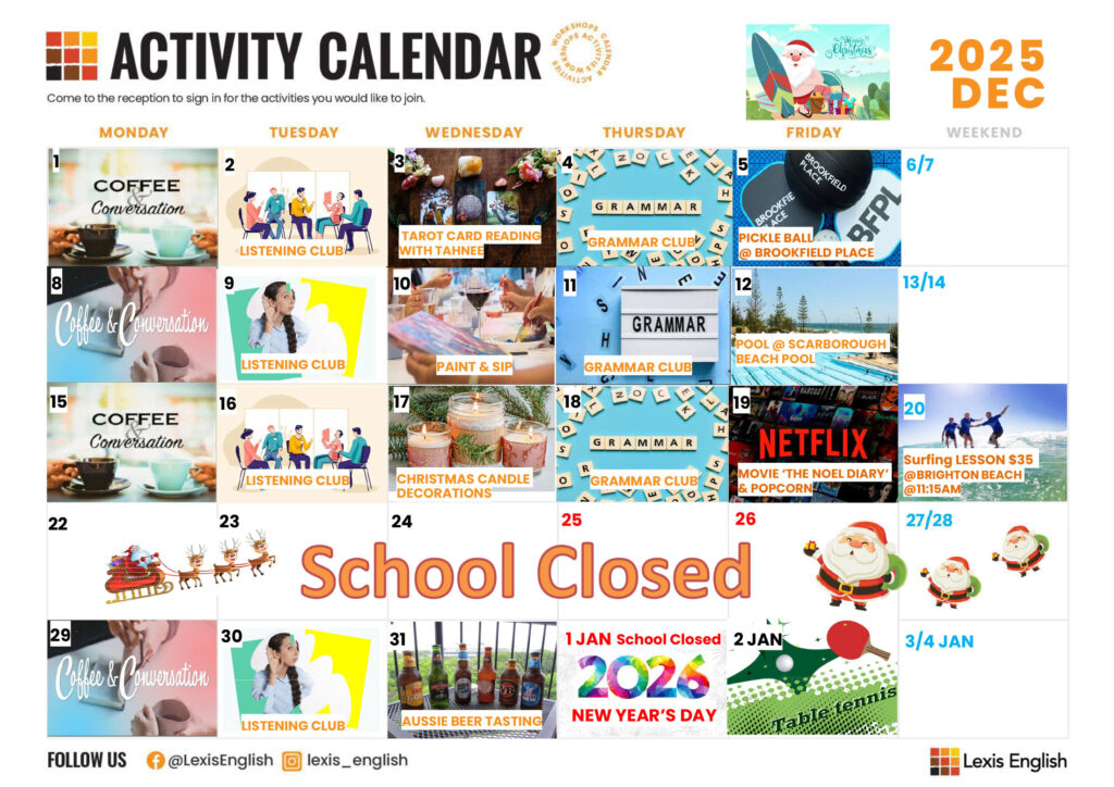 レクシスパースシティではアクティビティを提供しています。英会話を伸ばしたい方向けの会話クラブや仕事探しに役立つ履歴書・面接ワークショップなども行っていますので、英語の上達だけでなく生活に役立つサポートも充実しています。