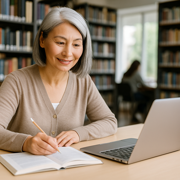 シニア世代にとっては「若い学生に混ざると少し気後れする」ということもありますが、図書館なら自分のペースで静かに学ぶことができ、安心して過ごせます。