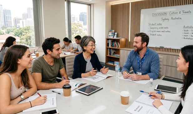 オーストラリアの語学学校では、授業は英語レベルごとにクラス分けされています。入学前や初日にレベルチェックテストが行われ、その結果をもとに、自分の英語力に合ったクラスからスタートします。