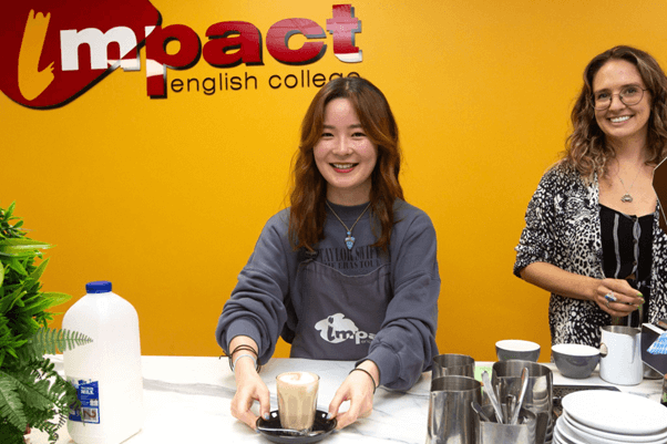 バリスタ・カフェ英語コースは、コーヒーが好き、海外のカフェで働いてみたい方におすすめの実践型プログラムです。授業ではコーヒーの淹れ方や豆の知識、接客英語、仕事の探し方までを総合的に学びます。校内のカフェでの実習に加え、オーストラリア認定のコーヒーアカデミーによる専門トレーニングも含まれており、修了後にはインパクト校とコーヒーアカデミー両方の修了証書が授与されます。