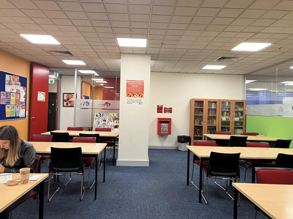 学習に集中できる静かなエリアと、友人と過ごすリラックスエリアがバランスよく配置されています。