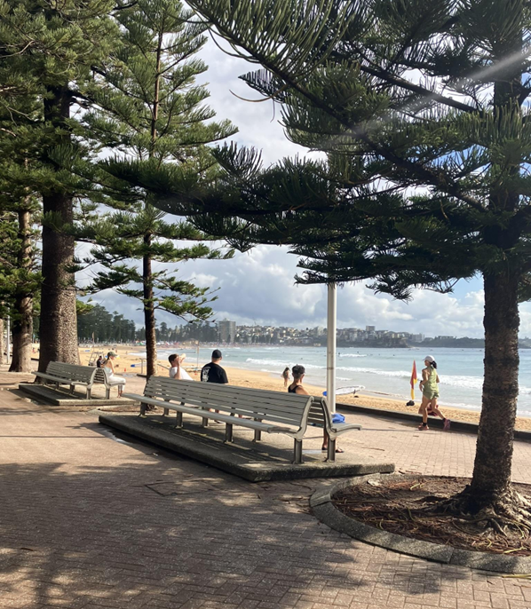 シドニーの中心部は、観光客やビジネスマンでいつも賑やか。日本人観光客も多く、まるで「海外の東京」と言えるほど活気に満ちています。ですが、マンリーと呼ばれるエリアには約10程のビーチがあり、その中の一つ、マンリービーチに一歩足を踏み入れると、そこには都会の喧騒から離れた「オーストラリアらしいスローライフ」が待っています。街を歩く人たちはサンダル姿で気取らず、朝は海辺でヨガやジョギング、ビーチ散策を楽しむ姿も見られます。