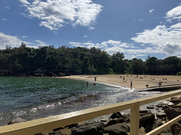 マンリービーチから海岸線を歩いて行くと、25分ほどで「シェリービーチ(Shelly Beach)」に行くことができます。小さな入り江のようなビーチで、マンリーとはまた違った穏やかさを感じられるのが特徴です。