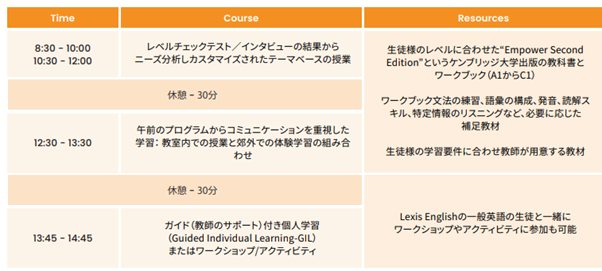 若い留学生が中心のクラスに入ることに不安がある方や、自分のペースで無理なく学びたい方にとっても、心地よい距離感で学べる特別なプログラムです。