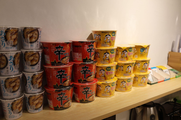 学校では学食で3食提供されますが、ちょっと小腹がすいたなぁ、と言う時にはカップヌードルなど軽食の販売もあります!