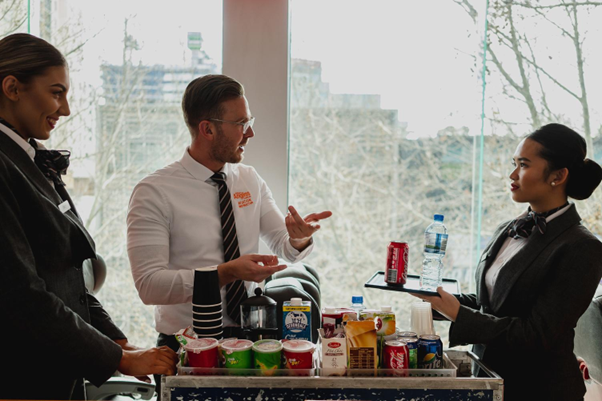 現在は留学生も受け入れています。日本人の学生さんも数名入学されてきていますが学生さんの殆どはオーストラリア人やアジアからの学生さんです。なのでインターナショナルな環境下で欧米スタイルの接客サービス、安全面についての考え方、そしてクルーとしてもチームワークについて「英語」を通して学ぶことができ、これは日本の専門学校では決して学べないことだと思います。